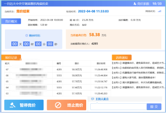 該項目時間緊、手續(xù)多,市拍賣行搶抓時間節(jié)點高效推進各項準備工作,并進行了前期廣泛招商。4月8日上午,項目網(wǎng)拍參拍單位高達33家,在67輪激烈競價后,最終以58.38萬元成交,溢價率高達151%。